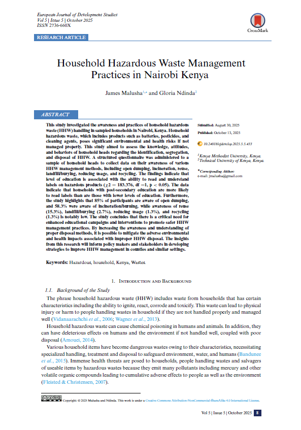 Household Hazardous Waste Management Practices in Nairobi Kenya