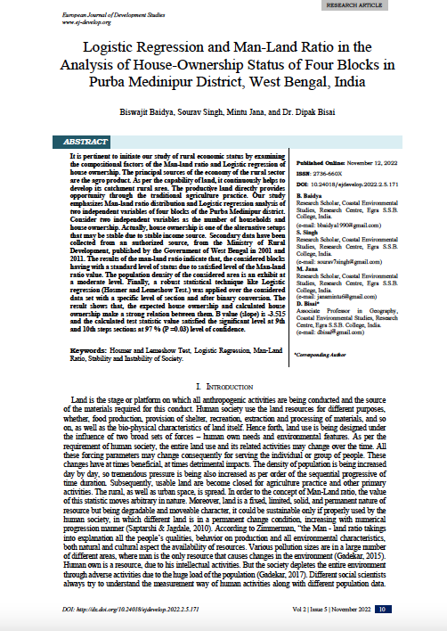 Logistic Regression and Man-Land Ratio in the Analysis of House-Ownership Status of Four Blocks in Purba Medinipur District, West Bengal, India