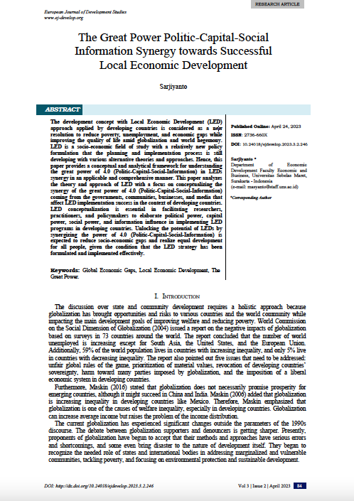 The Great Power Politic-Capital-Social Information Synergy towards Successful Local Economic Development