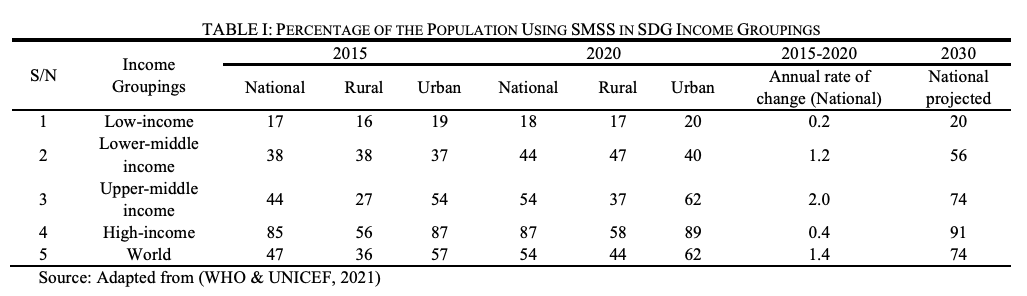 Sanitation Status of Income Groupings of the Sustainable Development Goals: Implications for the Attainment of Target 6.2